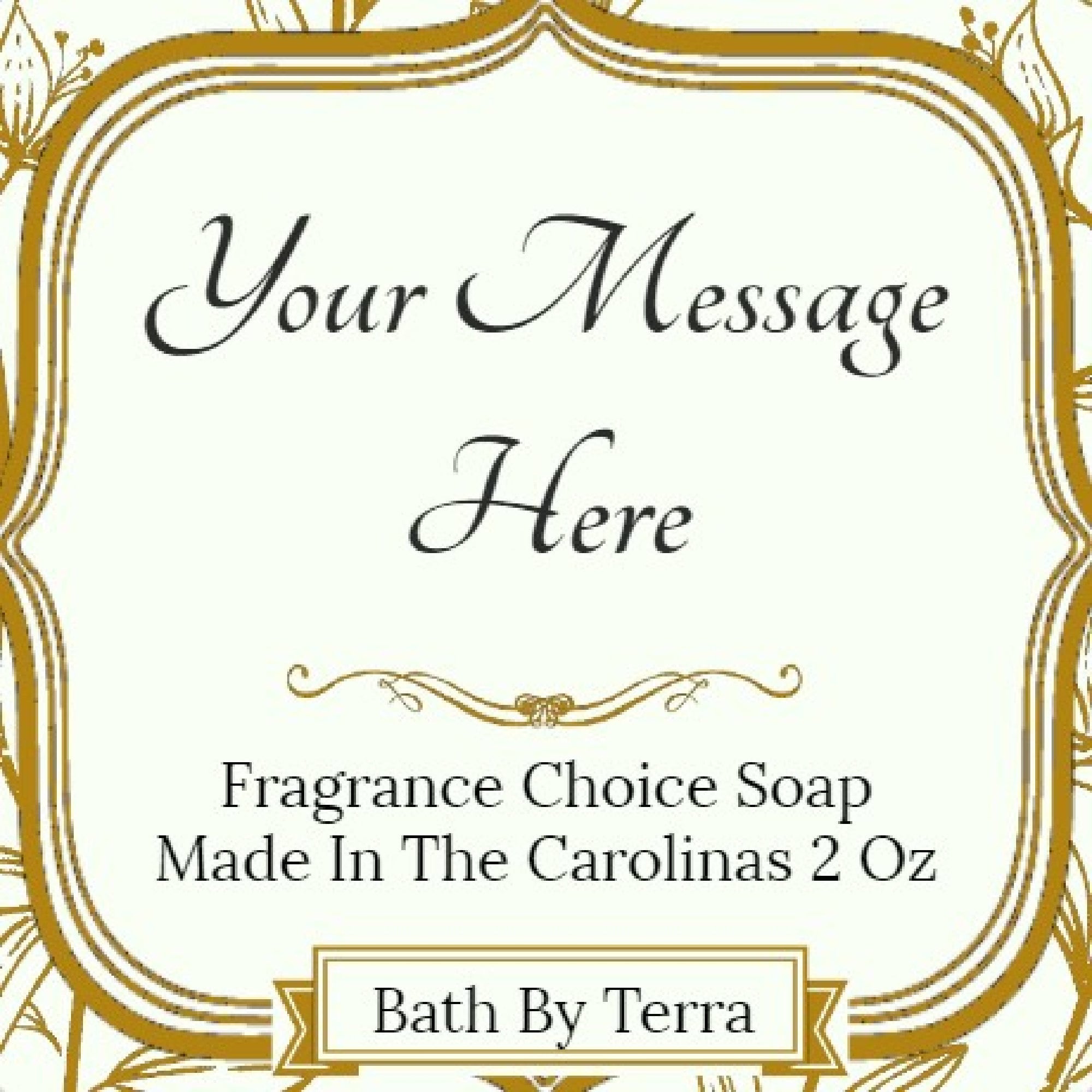 No. Each Soap Favor Will Have A 1.5 x 1.5 inch white matte Sticky Product Label On The Back.