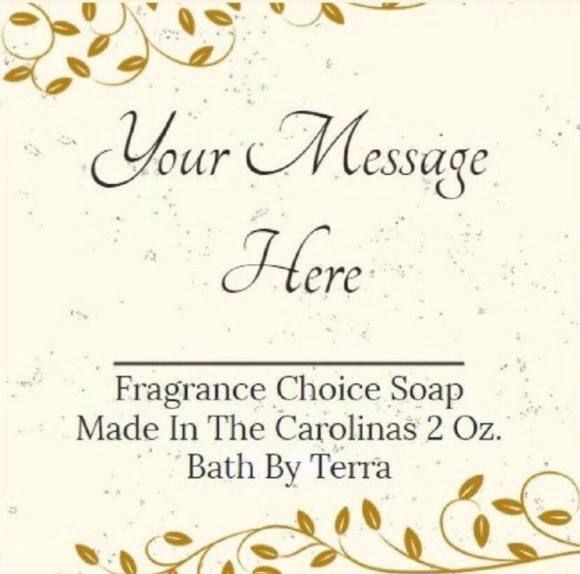 No. Each Soap Favor Will Have A 1.5 x 1.5 inch white matte Sticky Product Label On The Back.